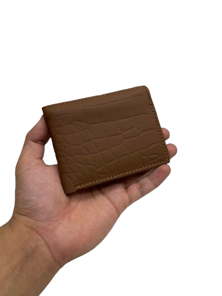 The Croco-Tan Wallet by Dashim Crafts is a symbol of refined craftsmanship, made from genuine leather with a luxurious crocodile-embossed texture. Designed for both elegance and practicality, it offers organized card slots and a spacious compartment for cash while maintaining a sleek, pocket-friendly profile. The rich tan color and textured finish make it a distinguished choice for the modern gentleman.