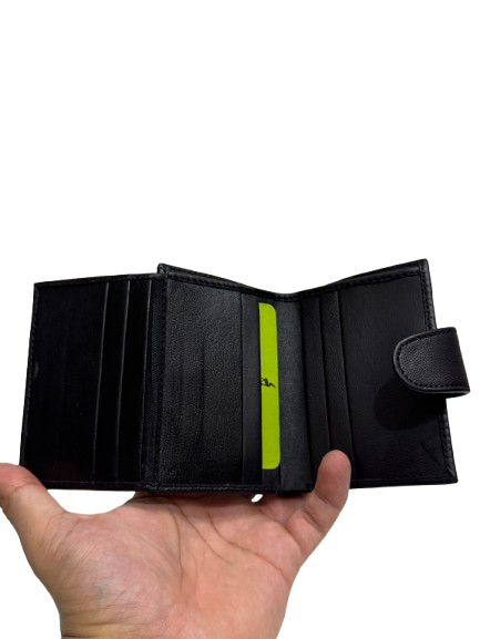 The sleek silhouette is enhanced by a secure snap closure, ensuring your cards and cash stay perfectly in place. Inside, the thoughtfully designed compartments provide easy organization without compromising elegance. Subtle embossed detailing reflects Dashim’s signature craftsmanship, making this wallet both a statement of style and reliability.