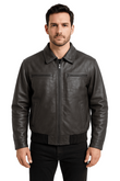 Command attention with the Onyx Luxe Aviator Jacket by Dashim Crafts, a masterpiece of timeless style and refined masculinity. Crafted from premium genuine leather in a rich onyx black tone, this jacket blends the heritage of the classic aviator with contemporary elegance. Its structured collar, sleek zip fastening, and ribbed hemline provide both comfort and sophistication, making it a versatile statement piece for any occasion.